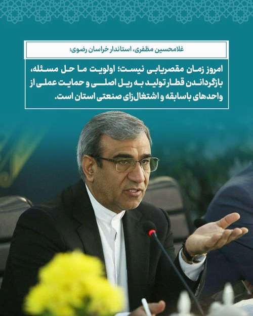 وی با اشاره به وضعیت واحدهای بزرگ صنعتی استان افزود: صنایعی همچون گروه کارخانجات مقصود، تنها یک بنگاه اقتصادی نیستند، بلکه شناسنامه و هویت صنعت خراسان محسوب می‌شوند. طبیعی است که در تلاطم‌های اقتصادی، این مجموعه‌ها نیز دچار چالش شوند اما امروز زمان آن نیست که بپرسیم چرا این‌طور شد؟ یا چه کسی مقصر است؟ بلکه اولویت اصلی، حل مسئله و بازگرداندن قطار تولید به ریل خود است.
